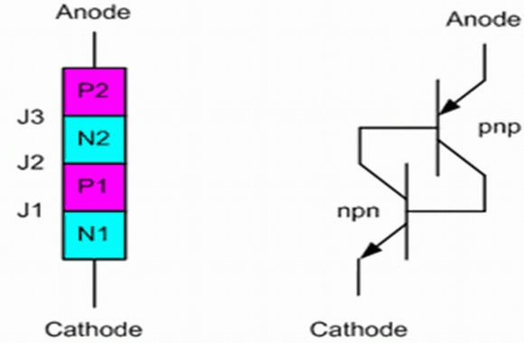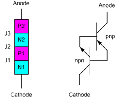 圖1 晶閘管物理結(jié)構(gòu)和電路
