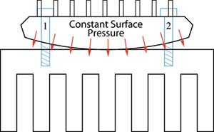 除TinyDIP/SMD外,SPM的表面都會有一定的翹曲。圖4為這種翹曲的一個夸張示意。模塊是用一些從表面中間穿出的螺絲緊固在散熱片上。如果安裝恰當,這種凸狀表面能保證有足夠的熱量從模塊傳遞到散熱片。如果緊固螺絲用力不均,就可能在模塊內(nèi)產(chǎn)生應力,導致模塊破損或性能下降。建議采用圖4所示的螺絲緊固順序(先按1?2的順序預緊固,再按2?1的順序最終緊固)。通常,預緊固扭矩為最大額定緊固扭矩的25%。只要散熱片與器件緊貼好了,就可通過SPM的內(nèi)置熱敏電阻獲取散熱片的溫度,從而簡化電路板的設計。