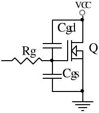 實(shí)際使用中還要考慮MOSFET柵漏極還有個(gè)電容Cgd的影響,MOSFET ON時(shí)Rg還要對Cgd充電,會(huì)改變電壓上升斜率,OFF時(shí)VCC會(huì)通過Cgd向Cgs充電,此時(shí)必須保證Cgs上的電荷快速放掉,否則會(huì)導(dǎo)致MOSFET的異常導(dǎo)通。
