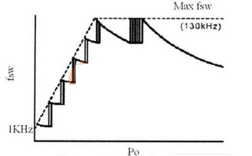 降低開關電源功耗的主要途徑是降低開關損耗和控制電路功耗。減少控制電路功耗可通過選擇功耗低、功能強、所需外部元件少的控制芯片及簡化外部控制電路來實現(xiàn)。這里主要討論降低開關損耗的措施。許多電子產(chǎn)品在使用中常處于輕載或待機狀態(tài),而開關電源*率開關管的開關頻率都很高,當開關電源工作在輕載或待機狀態(tài)下時,開關損耗成為主要損耗,相對損耗大大增加,效率降低。降低輕載損耗的有效方法是在輕載狀態(tài)下降低開關電源的開關頻率,從而使輕載效率保持與滿載時相同。圖1中,隔離變換控制電路采用準諧振電源控制器FA5531P及外圍元件構(gòu)成。FA5531P的開關頻率不是由他激振蕩器決定的固定開關頻率,而是由自激振蕩決定。芯片在正常負載時保持固定頻率的準諧振開關狀態(tài),輕載時自動降低開關頻率以減少空載損耗,最低開關頻率可降至1KHz,F(xiàn)A5531P開關頻率與輸出功率關系如圖3所示。FA5531P的另一個特點是具有內(nèi)部啟動電路,從而也降低了待機功耗。FA5531P自身功耗很低,工作電流僅1.5mA,集成度高,只需極少的外部元件。