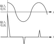 目前,考慮到體積,成本等因素,大多數(shù)AC/DC變換器輸入整流濾波采用電容輸入式濾波方式,電路原理如圖1所示。由于電容器上電壓不能躍變,在整流器上電之初,濾波電容電壓幾乎為零,等效為整流輸出端短路。如在最不利的情況(上電時的電壓瞬時值為電源電壓峰值)上電,則會產(chǎn)生遠(yuǎn)高于整流器正常工作電流的輸入浪涌電流,如圖2所示。當(dāng)濾波電容為470μF并且電源內(nèi)阻較小時,第一個電流峰值將超過100A,為正常工作電流峰值的10倍。