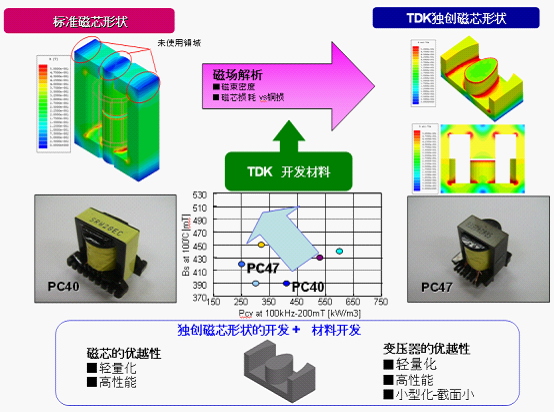 圖7:采用PC47材料的TDK獨(dú)有的磁芯的形狀