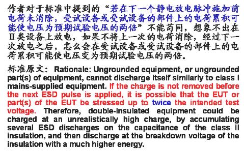 關(guān)于不接地設(shè)備的試驗(yàn)配置,新版標(biāo)準(zhǔn)與舊版標(biāo)準(zhǔn)的配置是相同的。關(guān)鍵是在單次放電時(無論是空氣的,還是接觸的),試品上的電荷應(yīng)當(dāng)在每次施加靜電放電脈沖之前先行釋放(釋放掉在需要施加靜電放電的金屬點(diǎn)或金屬部位上的電荷)。