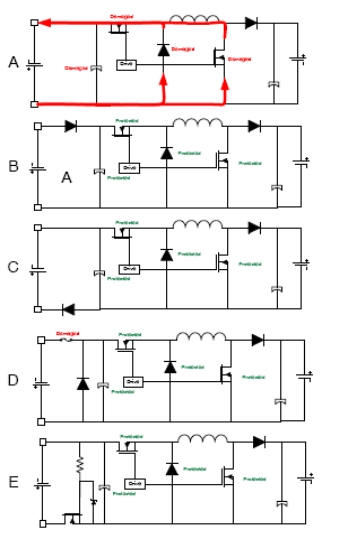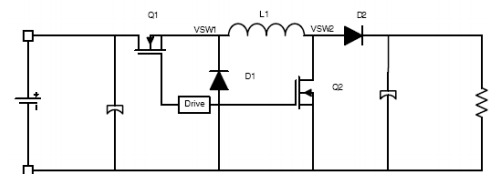 四開關(guān)非反相降壓-升壓有兩種操作模式,即降壓模式和降壓-升壓模式。在降壓模式下,轉(zhuǎn)換器產(chǎn)生輸入電壓脈沖,它經(jīng)過 LC 濾波來產(chǎn)生一個較低的直流輸出電壓。輸出電壓可以通過修改相對于開關(guān)周期或開關(guān)頻率的導(dǎo)通時間來改變。
