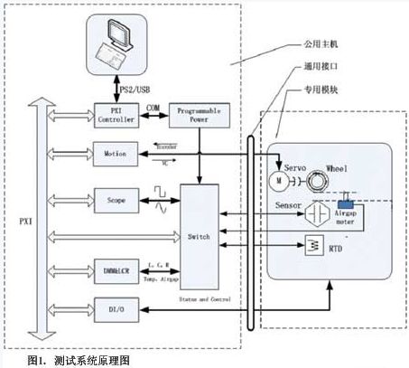 目前,汽車(chē)傳感器沒(méi)有一個(gè)統(tǒng)一的行業(yè)標(biāo)準(zhǔn),基本是按照使用者的要求定制。譬如目標(biāo)輪及其轉(zhuǎn)速、空氣氣隙和傳感器的安裝尺寸各不相同,即使是傳感器裝配到同一種車(chē)型上,也會(huì)隨著安裝位置的不同而存在差異。但是,同一臺(tái)設(shè)備不可能滿足全部傳感器的測(cè)試要求,由此引入模塊化的設(shè)計(jì)思想,即系統(tǒng)中相同的部分,如測(cè)試儀器、測(cè)試軟件、氣動(dòng)控制系統(tǒng)、主電路系統(tǒng),作為公用資源(這里稱(chēng)為“主機(jī)”);對(duì)系統(tǒng)中要求隨著傳感器變化的部分,如目標(biāo)輪及馬達(dá)、夾具及專(zhuān)用電路,被看成模塊。主機(jī)和模塊之間采用快插的方式完成電氣連接且為標(biāo)準(zhǔn)化接口,可進(jìn)行后續(xù)擴(kuò)展。當(dāng)測(cè)試不同傳感器時(shí),選用不同的測(cè)試模塊連接到主機(jī)上即可。