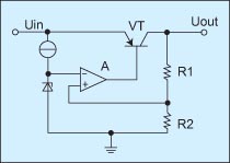 取樣電壓加在比較器A的同相輸入端,與加在反相輸入端的基準(zhǔn)電壓Uref相比較,兩者的差值經(jīng)放大器A放大后,控制串聯(lián)調(diào)整管的壓降,從而穩(wěn)定輸出電壓。當(dāng)輸出電壓Uout降低時(shí),基準(zhǔn)電壓與取樣電壓的差值增加,比較放大器輸出的驅(qū)動(dòng)電流增加,串聯(lián)調(diào)整管壓降減小,從而使輸出電壓升高。相反,若輸出電壓Uout超過所需要的設(shè)定值,比較放大器輸出的前驅(qū)動(dòng)電流減小,從而使輸出電壓降低。供電過程中,輸出電壓校正連續(xù)進(jìn)行,調(diào)整時(shí)間只受比較放大器和輸出晶體管回路反應(yīng)速度的限制。