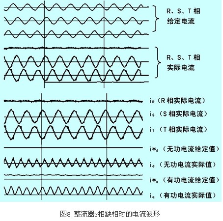 如果CT損壞檢測不到電流(即電流檢測為0,例如r相電流ir=0),由于電流給定是一直存在的,則因為相電流調(diào)節(jié)器的作用,r相電流會越來越大,直到過流跳電或dc過壓跳電(如果dc電壓先起作用的話)。