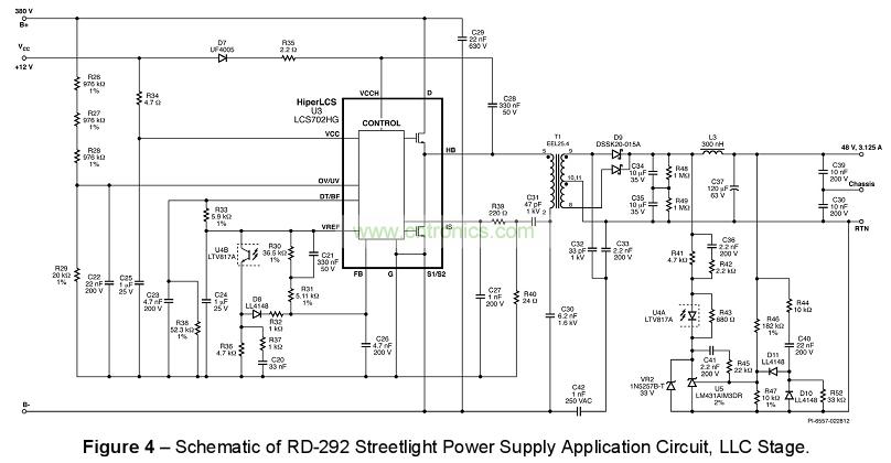RDR-292 中所介紹的驅(qū)動(dòng)器電路,在 230 VAC 和 110 VAC 輸入條件下效率分別可超越 93% 和 91% 。 此設(shè)計(jì)提供系統(tǒng)功率因子 (PF) 達(dá) 0.97 以上,THD 小于 10%,可輕松符合 EN61000-3-2 C。在相同的設(shè)計(jì)平臺(tái)下,只要簡(jiǎn)單的從HiperPFS™( PFC)和HiperLCS™(LLC)家族成員中選擇不同的轉(zhuǎn)換器 IC以及對(duì)應(yīng)的功率器件的大小,就能將設(shè)計(jì)在 75 W 到 400 W 之間進(jìn)行調(diào)整。