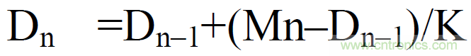 選擇指數(shù)平均法,用戶可設(shè)定衰減常數(shù)對(duì)電壓或電流有效值、有功功率的瞬時(shí)值(采樣數(shù)據(jù))進(jìn)行指數(shù)平均,去除被測(cè)量的高頻成分。其中衰減常數(shù)可以手動(dòng)設(shè)置,衰減常數(shù)設(shè)置值越大測(cè)量值越穩(wěn)定,對(duì)輸入變化的響應(yīng)速度也就越慢,也就是說測(cè)量延遲會(huì)相應(yīng)變長(zhǎng)。該平均法常用于信號(hào)中存在高頻信號(hào),通過設(shè)定衰減常數(shù)減小高頻信號(hào)對(duì)數(shù)據(jù)的干擾,公式如下: