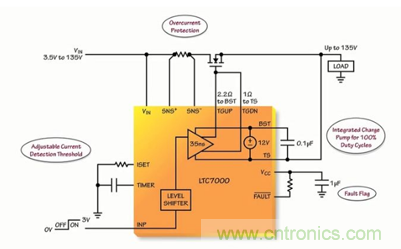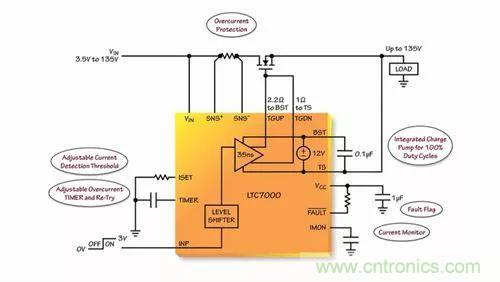 ADI 電源產(chǎn)品組的設(shè)計(jì)工程師 Mark Mullen 就上述問題為大家分享了一個(gè)基于LCT7000受保護(hù)的高壓側(cè)驅(qū)動(dòng)器解決方案。