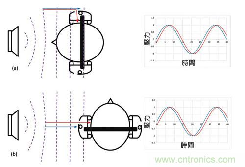 圖4:靠近噪聲進(jìn)入耳朵的位置放置話筒(a) 0度朝向的噪聲(b) 90度朝向的噪聲