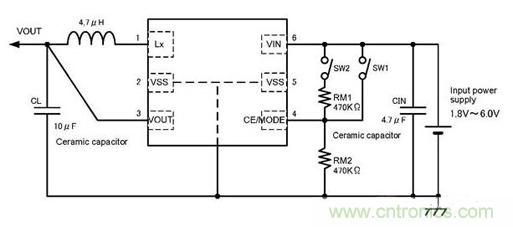 XC9237型在PWM/PFM自動轉(zhuǎn)換基礎上,又增加了用外部信號強制過渡到固定在PWM工作的功能。對應于使用機器的工作狀態(tài),能使其工作在紋波更低的PWM工作狀態(tài),能隨時控制降低噪聲(參照圖6)