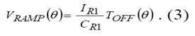 在功率開關(guān)管關(guān)斷期間,CR1電容的充電電流是IR1恒流,CR1電容上的電壓VRAMP (θ)線性升高: