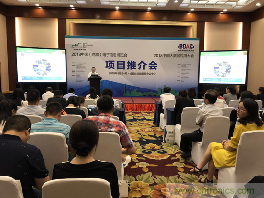 2018年5月24日下午, 2018中國(guó)(成都)電子信息博覽會(huì)暨2018中國(guó)大數(shù)據(jù)應(yīng)用大會(huì)在成都世紀(jì)城國(guó)際會(huì)議中心召開(kāi)項(xiàng)目推介會(huì)?;顒?dòng)由中電會(huì)展與信息傳播有限公司總經(jīng)理宋偉主持,四川省經(jīng)濟(jì)和信息化委員會(huì)電子處蘇平處長(zhǎng),成都市經(jīng)濟(jì)和信息化委員會(huì)通用電子處副處長(zhǎng)鄧敏出席推介會(huì)并致辭,中國(guó)電子器材總公司總經(jīng)理陳雯海向來(lái)賓介紹了2018中國(guó)(成都)電子信息博會(huì)項(xiàng)目整體情況和2018中國(guó)大數(shù)據(jù)應(yīng)用大會(huì)項(xiàng)目的相關(guān)進(jìn)展情況,四川省大數(shù)據(jù)產(chǎn)業(yè)聯(lián)合會(huì)常務(wù)副秘書長(zhǎng)朱小軍,代表合作伙伴在推介會(huì)上進(jìn)行了發(fā)言,四川省其他30家相關(guān)學(xué)協(xié)會(huì)等也參加了本次活動(dòng)。另外,現(xiàn)場(chǎng)還有超過(guò)50家媒體及100家成都及四川地區(qū)電子信息產(chǎn)業(yè)相關(guān)企業(yè)及組織出席項(xiàng)目推介會(huì)。