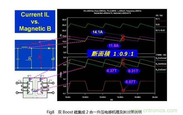 對(duì)于功率大的PV逆變器,因其常常采用雙Boost的結(jié)構(gòu),為此若進(jìn)一步引入2合一式的磁集成(Integrated Magnetics)技術(shù),還可以進(jìn)一步提高效率,降低成本。
