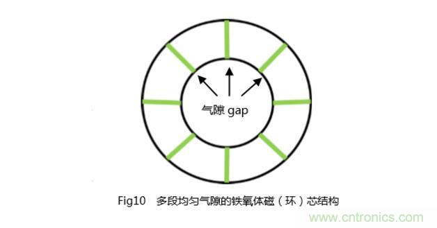 1)采取類似圖10所示的多段均勻氣隙以減小磁芯的漏磁;