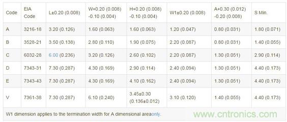 ② 表示鉭電容的尺寸大小,有A、B、C、D、E、Y、V 六種尺寸