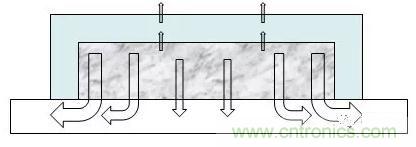 功率MOSFET內(nèi)部通常是由許多晶胞單元并聯(lián)而成,如圖2所示。通常假定芯片內(nèi)部處于理想的熱平衡狀態(tài),整個(gè)硅片的結(jié)溫完全一致。然而在實(shí)際條件下,硅片邊沿?zé)嶙璧停鐖D3所示;由于硅片焊接的不均勻,各局部區(qū)的熱阻也不一致;此外,各局部區(qū)的閾值電壓VTH也不完全相同,它們通過的漏極電流,也就是(VGS-VTH)和跨導(dǎo)乘積,也不完全相同。上述因素導(dǎo)致局部區(qū)溫度也不一樣。