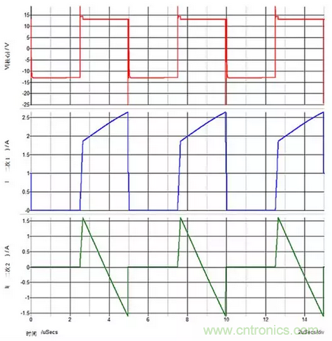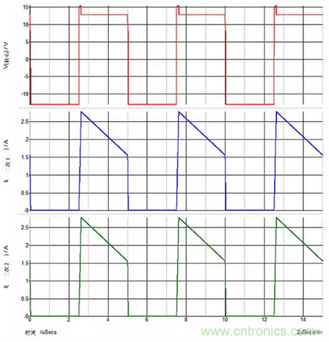圖3:重載次級1和輕載次級2?;妷簩Υ渭?的輸出電容器進行峰值充電。