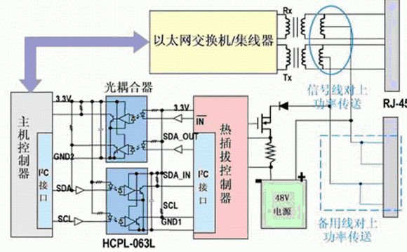 - 采用3.3V 15MBd光耦合器,隔離48V電源和PSE中使用的I2C控制總線