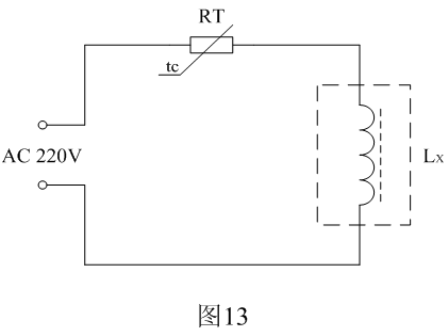 高壓包退磁的方法是用一個(gè)20~40歐姆的消磁熱敏電阻(可用兩個(gè)消磁熱敏電阻串聯(lián))與高壓包初級(jí)線圈串聯(lián),然后接到110~220V/50Hz交流電源上,大約需要20多秒鐘,待消磁熱敏電阻完全加熱后,即可達(dá)到退磁的目的,如圖13所示。圖13中RT為熱敏電阻,Lx為高壓包初級(jí)線圈。一般消磁電流需要達(dá)到極限電流Imax的3~5倍。