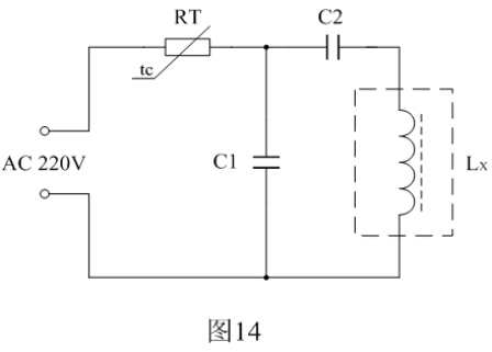 圖14中RT為熱敏電阻,Lx為行推動(dòng)變壓器的初級(jí)線圈,C1為分流電容,C2為限流電容。電容C1和C2的大小,需根據(jù)行推動(dòng)變壓器初級(jí)線圈勵(lì)磁電流的大小來決定。一般消磁電流需要達(dá)到極限電流Imax的3~5倍。