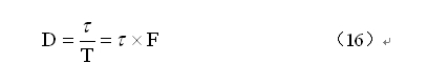 c.開關(guān)電源變壓器工作電壓的脈沖寬度 ,可由開關(guān)電源在某工作電壓狀態(tài)下(最高或最低),對(duì)應(yīng)的占空比D求得。下面(16)式和(17)式是計(jì)算脈沖寬度 和占空比D的關(guān)系式: