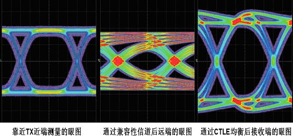 圖5:USB3.0的Transmitter測(cè)試在近端、遠(yuǎn)端和均衡后的眼圖對(duì)比