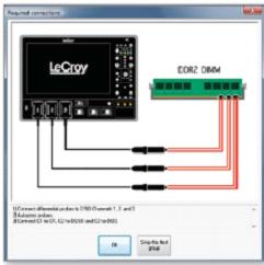 QPHY-DDR2的操作非常簡單,如右圖所示,它使用友好的圖形化界面引導用戶從探頭與被測系統(tǒng)連接開始一步步完成DDR2的所有測試。目前為止,力科DDR軟件包是能支持的測試項目最多的。