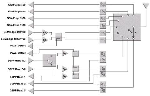 多模多頻段GSM/WCDMA手機的技術要求已經(jīng)超過了傳統(tǒng)RFIC技術(如GaAs)極限。受這些超高性能要求影響最嚴重的是天線和射頻開關。