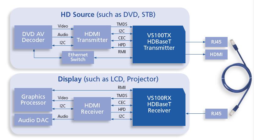 HDbaseT技術(shù)與現(xiàn)有HDMI傳輸方案配合,設(shè)計(jì)十分簡(jiǎn)單,為STB和TV廠商提供更多賣點(diǎn)