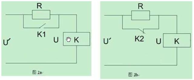 所謂返回系數(shù)kf是反映吸力特性與反力特性配合程度的一個(gè)參數(shù),也即表征繼電器動(dòng)作值與釋放值的差異性。不同用途的繼電器,往往要求不同的返回系數(shù),當(dāng)繼電器的返回系數(shù)不能滿足使用要求時(shí),可采取圖2所示的電路來(lái)改進(jìn)返回系數(shù)。圖2a為減少kf的電路,而圖2b則是增大kf的電路。圖2中的r取值應(yīng)適當(dāng),也就是說(shuō)串入r后,必須使加至繼電器線圈的電壓仍要大于其動(dòng)作電壓(圖2a)或保持電壓(圖2b)。