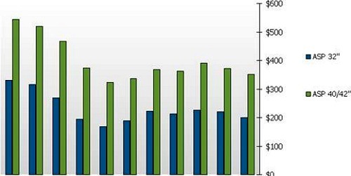 當(dāng)LED芯片價格穩(wěn)定地下滑之際,LCD面板的價格動態(tài)更顯得復(fù)雜;經(jīng)歷了經(jīng)濟(jì)衰退之后,市場需求比預(yù)期的還迅速地回到2009年的水準(zhǔn),而供應(yīng)鏈的廠商也在當(dāng)年下半季就面臨了產(chǎn)品短缺的狀態(tài),因而導(dǎo)致2010年上半年液晶電視面板價格上揚(yáng)。由于整個液晶電視的供應(yīng)鏈的運(yùn)作需時三個月,面板價格的上升,將使得 2010上半年度零售價的降幅會趨于緩和。