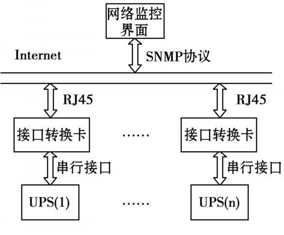 不間斷電源(UPS)能夠給計算機等電力電子設(shè)備提供持續(xù)穩(wěn)定的不間斷電源供應,以避免因供電不穩(wěn)定時而造成的設(shè)備損壞。但是由于UPS有限的備用時間,以及在工作中可能存在的各種異常情況,使得管理人員必須及時準確地了解設(shè)備運行時的電力環(huán)境,掌握UPS的工作狀況。目前大多數(shù)UPS監(jiān)控系統(tǒng)是通過RS232或RS485的串行接口對UPS進行人工值守的方式進行監(jiān)控。但這兩種接口都有傳輸距離的限制,不能實現(xiàn)任意距離的分散式遠程監(jiān)控。針對這一問題,本文提出了一種基于SNMP網(wǎng)絡(luò)管理協(xié)議的UPS監(jiān)控系統(tǒng)的設(shè)計方案,設(shè)計了集成SNMP協(xié)議的硬件接口轉(zhuǎn)換卡,使得僅擁有串行接口的UPS具有連網(wǎng)能力,從而實現(xiàn)了UPS的網(wǎng)絡(luò)管理和監(jiān)控。