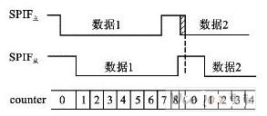 通過對從器件的波形分析發(fā)現(xiàn),counter=8后的第一個時鐘周期,數(shù)據(jù)最后一位的傳輸已經(jīng)完成。在數(shù)據(jù)已經(jīng)收/發(fā)完畢的情況下,counter=8狀態(tài)的長短對數(shù)據(jù)的正確性沒有影響,因此可以縮短counter=8的狀態(tài),以避免前一個SPIF和后一個SPIF相重疊。這樣,從硬件上避免了這一階段的溢出錯誤。