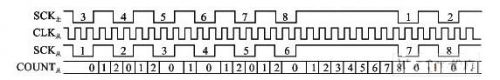 但由于主從時鐘之間是異步的,并且經(jīng)過了取整,所以正常時候SCK=1時的時鐘周期計數(shù)值COUNT應(yīng)滿足: