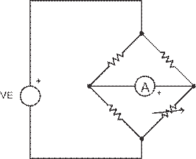 圖 4 所示的惠斯通橋接是一款我們所熟悉的電路,主要用于高精度地測(cè)量電阻。1833 年, Hunter Christie 發(fā)明了這種電路,隨后 Charles Wheatstone 對(duì)其進(jìn)行了研究,并做了廣泛的分析,Wheatstone 橋接便因此得名。Wheatstone 還首次運(yùn)用獨(dú)特的鉆石形風(fēng)格繪制這種電路,并一直沿用至今。