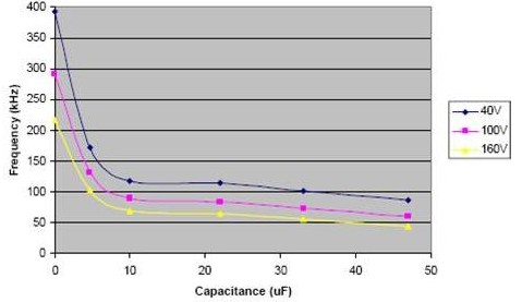 下圖給出了頻率根據(jù)不同的輸出電壓和不同的電感值的變化曲線。