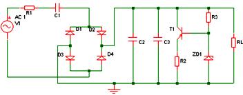 D1作半波整流用,C2、C3為濾波電容,交流電源U上半周時(shí),經(jīng)C1、R1降壓,由D1整流后給電容C2平滑濾波輸出