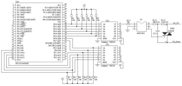 可控硅相控調(diào)光電路如圖3 所示。單片機(jī)的控制信號經(jīng)74HC04反相后送到光耦MOC3023,光電隔離后輸入到可控硅T16C6F 的控制極,控制可控硅的導(dǎo)通角,實(shí)現(xiàn)調(diào)光。