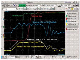泰克8000B系列儀器中安裝有80E04電子采樣模塊,是成功測量串?dāng)_的理想儀器組合。80E04是一款雙通道采樣模塊,包含有一個(gè)TDR階躍電壓產(chǎn)生器,能產(chǎn)生上升時(shí)間為17ps的250mv窄脈沖,并以50歐姆的源阻抗輸出。測試人員只需連接待測PCB即可。