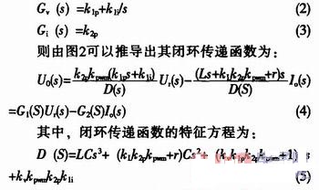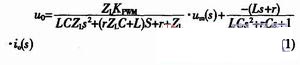 對于圖1所示的單相全橋逆變器,可得到下面的單相逆變電源的連續(xù)域數(shù)學(xué)模型式: