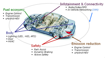 隨著西方汽車市場需求的復(fù)蘇以及發(fā)展中經(jīng)濟體車輛數(shù)目的持續(xù)增長使燃料消耗和污染不斷增加,政府和制造商都在積極探索改善燃油經(jīng)濟性以節(jié)約能源、減少排放的途徑,汽車中越來越多的電子功能也使半導(dǎo)體元件在車輛中的比重不斷激增。面對環(huán)保和豐富消費者體驗的雙重挑戰(zhàn),半導(dǎo)體制造商正在利用其技術(shù)專長開發(fā)各種符合汽車規(guī)范的解決方案。