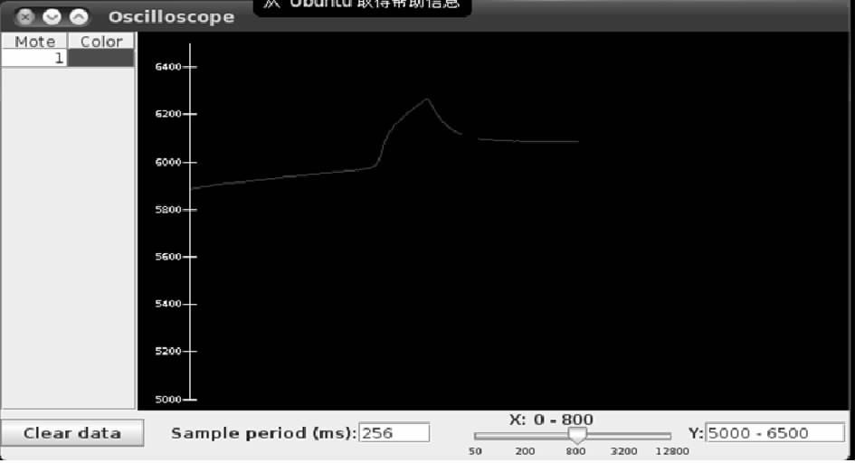TinyOS是UC Berkeley開(kāi)發(fā)的開(kāi)放源代碼操作系統(tǒng),專(zhuān)為嵌入式無(wú)線傳感器設(shè)計(jì),操作系統(tǒng)基于構(gòu)件的架構(gòu)使得快速更新成為可能,而這又減小了受傳感器網(wǎng)絡(luò)存儲(chǔ)器限制的代碼長(zhǎng)度。TinyOS的構(gòu)件包括網(wǎng)絡(luò)協(xié)議、分布式服務(wù)器、傳感器驅(qū)動(dòng)及數(shù)據(jù)識(shí)別工具。其良好的電源管理源于事件驅(qū)動(dòng)執(zhí)行模型,該模型也允許時(shí)序安排具有靈活性。因此對(duì)于整個(gè)無(wú)線傳感器網(wǎng)絡(luò)的驗(yàn)證采用TinyOS操作系統(tǒng),設(shè)計(jì)為兩個(gè)節(jié)點(diǎn),節(jié)點(diǎn)A負(fù)責(zé)采集溫度濕度數(shù)據(jù),然后將采集到的數(shù)據(jù)發(fā)送到另一個(gè)節(jié)點(diǎn)B,節(jié)點(diǎn)B接收到數(shù)據(jù)后,通過(guò)USB將數(shù)據(jù)傳輸?shù)絺€(gè)人電腦,并將該數(shù)據(jù)通過(guò)圖表顯示,如圖10所示。