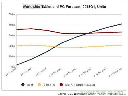 當(dāng)前消費(fèi)類電子產(chǎn)品的主要產(chǎn)品細(xì)分類型如下:配有3-5英寸屏幕的智能手機(jī);5-8英寸的超級(jí)手機(jī)或平板手機(jī);8-11.6英寸的平板電腦;11.6-15.6英寸的超極本;以及最大可達(dá)17英寸的筆記本電腦。在其5年的產(chǎn)品歷史中,平板電腦被認(rèn)為是升溫最快的移動(dòng)設(shè)備,根據(jù)預(yù)測(cè),到2015年其銷量有望趕超個(gè)人電腦。因此,PC供應(yīng)商開始將重心轉(zhuǎn)移至用戶界面友好的觸摸設(shè)計(jì)上,比如具有與筆記本電腦或平板電腦相同功能的可翻轉(zhuǎn)筆記本電腦。