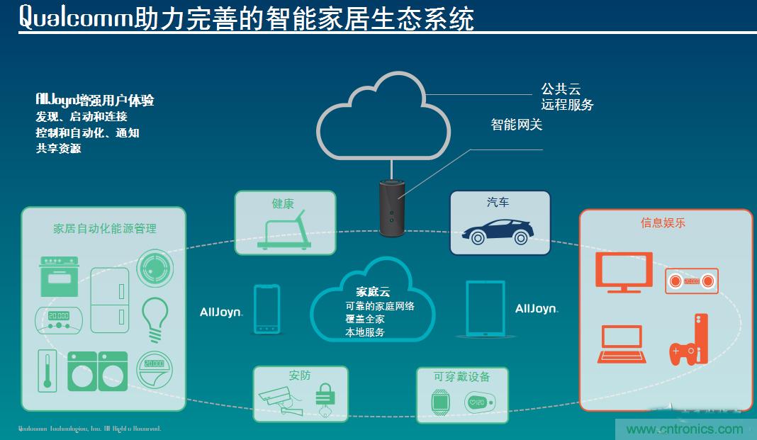 Qualcomm創(chuàng)銳訊物聯(lián)網(wǎng)市場經(jīng)理貝曉珊女士在 “IoE互聯(lián)家庭解決方案概述”主題演講中談到,盡管不同的分析機(jī)構(gòu)給出了不同的數(shù)據(jù),但結(jié)論是統(tǒng)一的,即物聯(lián)網(wǎng)市場規(guī)模的巨大化。而高通創(chuàng)銳訊將致力于端到端的IOE解決方案,助力完善智能家居生態(tài)系統(tǒng)。會議上貝曉珊詳細(xì)介紹了兩款WIFI芯片產(chǎn)品QCA4004和QCA4531以及AllJoyn SDK軟件平臺。