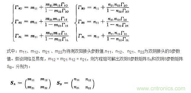 用2O dB衰減器作為負載替代方法1中50 Ω匹配負載,用矢量網(wǎng)絡分析儀測出衰減器連接雙陰、雙陽的反射系數(shù)ΓAL、ΓBL,測得2O dB衰減器的反射系數(shù)分別為Γ 1L ,Γ2L。其他步驟類似于方法1。計算出S并和方法1中的對比。