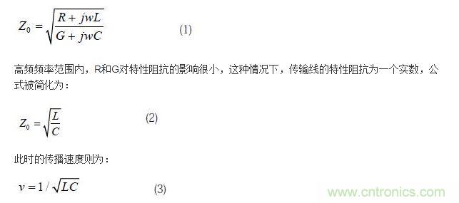 傳輸線(xiàn)內(nèi)的信號(hào)在傳輸過(guò)程中,將即時(shí)信號(hào)外加電壓與內(nèi)通電流的比值稱(chēng)為信號(hào)的瞬態(tài)阻抗。當(dāng)傳輸線(xiàn)沿途的瞬態(tài)阻抗為恒定值時(shí),這個(gè)值就被稱(chēng)為傳輸線(xiàn)的特性阻抗,表達(dá)式為: