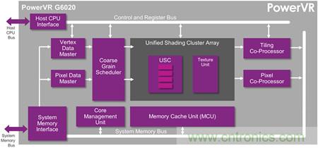 新款PowerVR G6020 GPU是專為能以超小硅晶面積實現(xiàn)繪圖功效而設(shè)計,能獲得更佳的真實裝置性能與兼容性,卻無需不必要的額外開銷。它是PowerVR Series6XE系列產(chǎn)品中尺寸最小的成員,具備四個算數(shù)邏輯單元(ALU)內(nèi)核,硅晶面積僅2.2mm2 (28納米制程,400MHz)。為達到此目標,G6020具備一個特別為UI體驗設(shè)計的高度優(yōu)化的統(tǒng)一渲染集群(USC)引擎。此特別配置的新款USC可在最小的面積與功率預(yù)算內(nèi)實現(xiàn)最佳的特性組合,并能與其它的Rogue USC完全兼容。