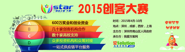 創(chuàng)新南山創(chuàng)業(yè)之星大賽(簡稱“創(chuàng)業(yè)之星”大賽)是中國最具影響力的創(chuàng)業(yè)、創(chuàng)客和投資孵化活動,該活動從2008年開始已成功舉辦七屆,2014年大賽供收到來自全國創(chuàng)業(yè)團(tuán)隊的超過1280個項目報名。隨著創(chuàng)客運(yùn)動在中國的蓬勃發(fā)展,2015年創(chuàng)業(yè)之星大賽特別開設(shè)“創(chuàng)客大賽”分賽場,并由專業(yè)的高科技媒體與服務(wù)平臺我愛方案網(wǎng)負(fù)責(zé)創(chuàng)客大賽賽場的總體運(yùn)營。